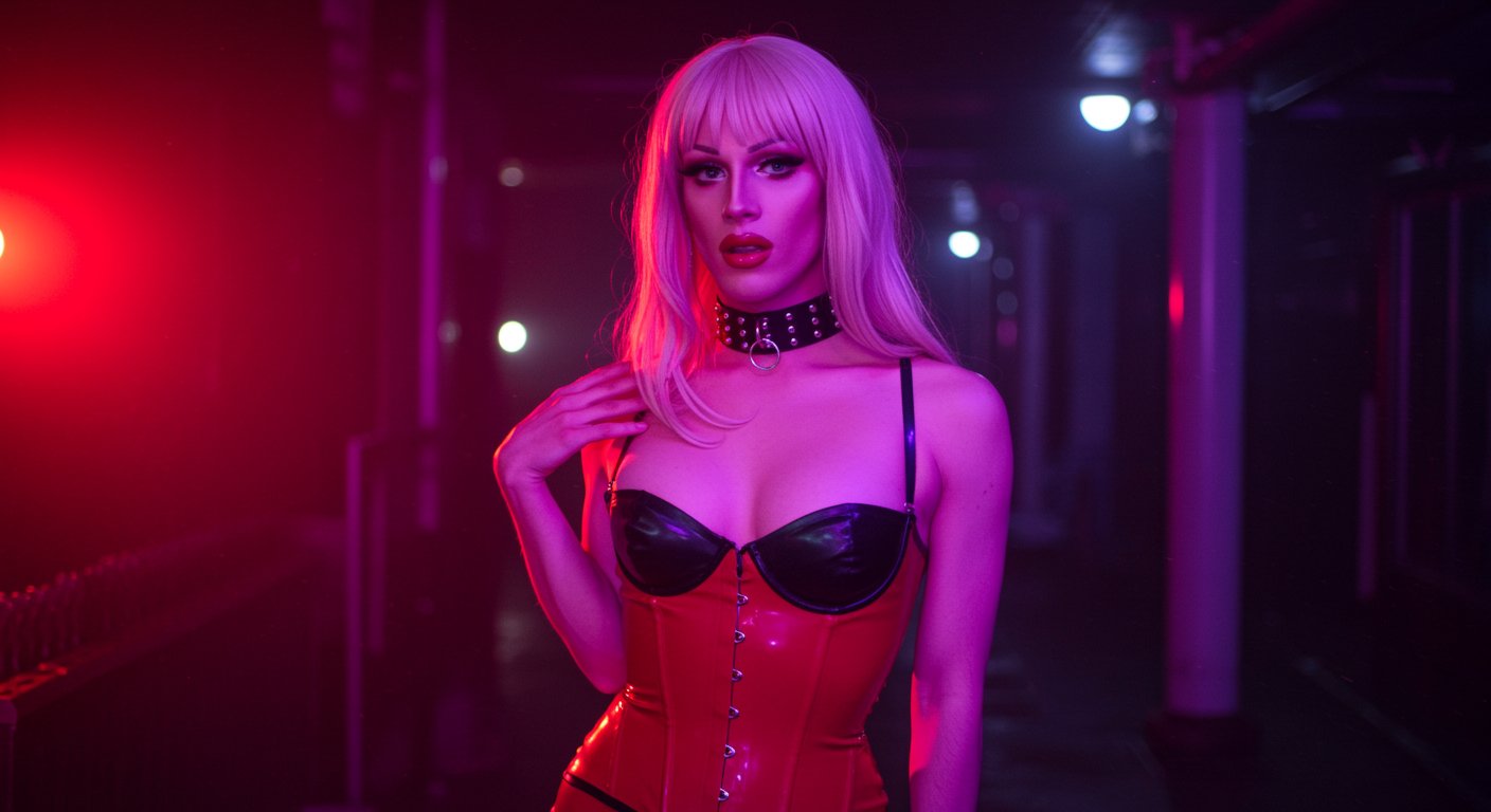 Die 15-cm-Plateau-Pumps klackerten wie Maschinengewehrfeuer im Treppenhaus. Im Erdgeschoss stand ein Pärchen und rauchte. Der Mann starrte erst auf die Absätze, dann auf die Netzstrümpfe, dann höher – auf den sichtbaren String, auf die freiliegenden Brustwarzen, die im Licht des Flures glänzten. Die Frau lachte leise und sagte: „Das ist eindeutig ein Typ… und der ist so was von geil drauf.“